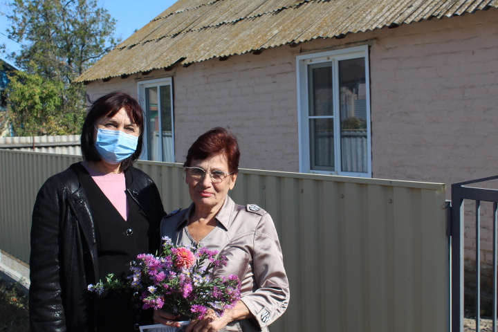 Поздравление профкомом учителя Ляшенко Л.М. на заслуженном отдыхе