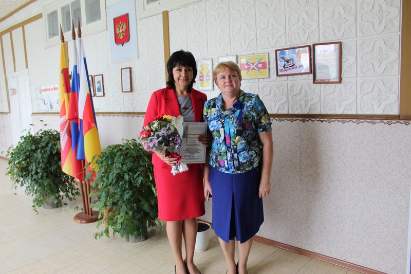 Поздравление учителей директором Медведевой Л.В. и председателем ППО Самсоновой Н.А.
