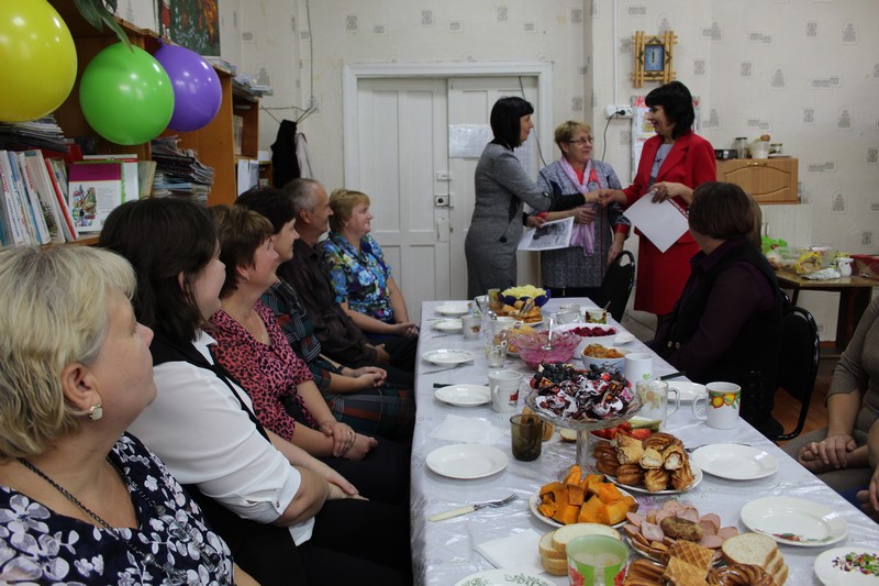 Собравшись за праздничным столом, педагоги приняли поздравление от директора школы Медведевой Л.В. и председателя ППО Самсоновой Н.А.. Ромашкова О.А. воспитатель дошкольной группы была награждена районной почетной грамотой профсоюзной организации за многолетний добросовестный труд в деле воспитания подрастающего поколения и за работу в первичной профсоюзной организации. Все педагоги получили профсоюзные подарки необходимые для работы в школе.