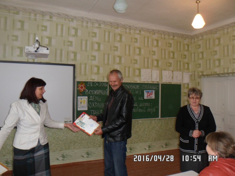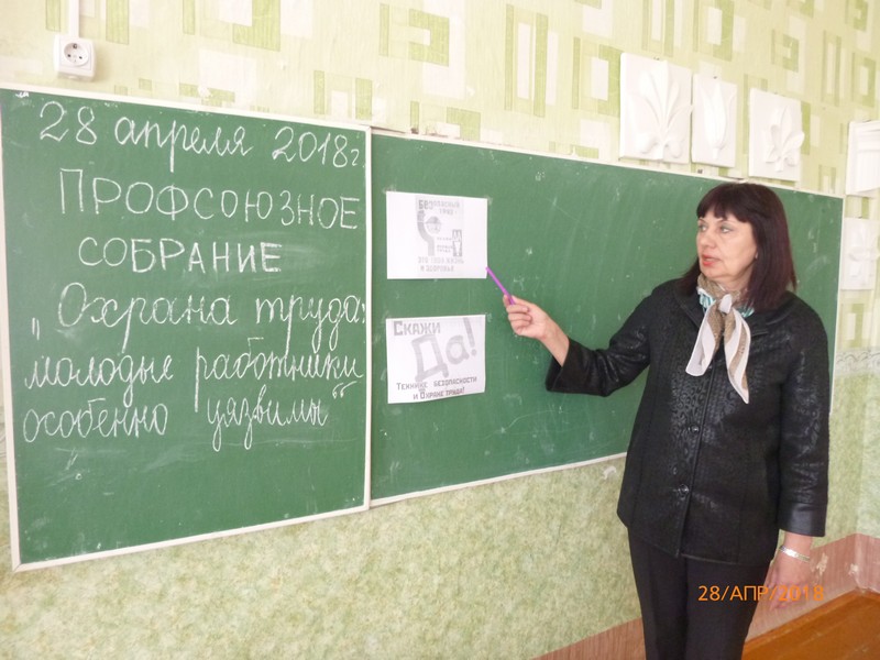 28 апреля 2017 г. в первичной профсоюзной организации МБОУ Зазерской СОШ состоялось профсоюзное собрание, посвященное Всемирному дню охраны труда, под девизом « Оптимизация сбора и использования данных по охране труда».