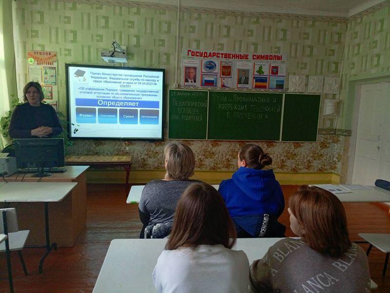 Об изменениях в процедуре сдачи ОГЭ девятиклассниками и ЕГЭ одиннадцатиклассниками рассказала зам. директора по УВР Казьменко М.Н.. Диретор школы Медведева Л.В. обратилась к родителям с просьбой особого контроля за подготовкой детей к выпускным экзаменам и моральной помощи в этом важном этапе их жизни.