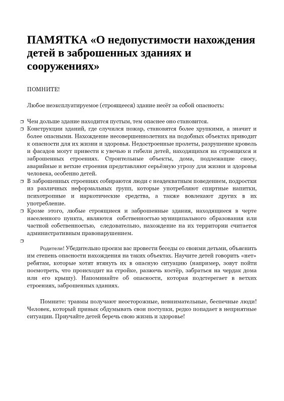 Памятка - Информационные материалы для родителей (docx, 643.6 Кб)