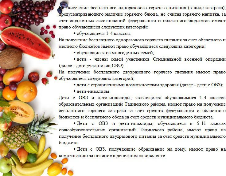 бесплатное горячее питание обучающихся с ограниченными возможностями здоровья (1-11 классы): горячий завтрак и горячий обед;