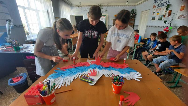 После соревнований ребята отдохнули в комнате аэрофитотерапии. После вкусного полезного обеда наступило время для отрядного творчества «Мы -орлята!». На занятии дети мастерили эмблему отряда, проявляя творчество, креатив и самостоятельность. В результате интересная задумка стала реальностью. В конце дня в лагере воспитателями Бурховцовой Н.И. и Исаевой И.В. были проведены игры на сплочение коллектива.