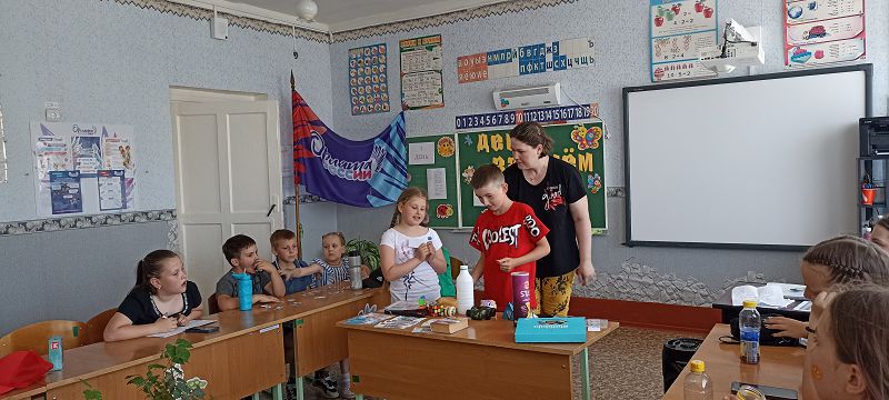 Утро в лагере началось с музыкальной зарядки, которую провели наши вожатые Лера и Соня. Минутку здоровья воспитатель Марина Николаевна посвятила «Правилам поведения на водных объектах».