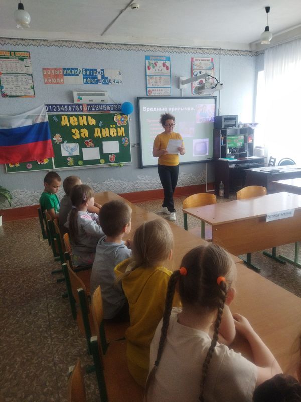 Утро в лагере началось с утренней линейки. Вожатые Бурховцова В. и Исаева А. провели зарядку на свежем воздухе. Минутка здоровья «Профилактика вредных привычек» прошла в виде игры, с просмотром презентации. Ребята вспомнили полезные и вредные привычки.