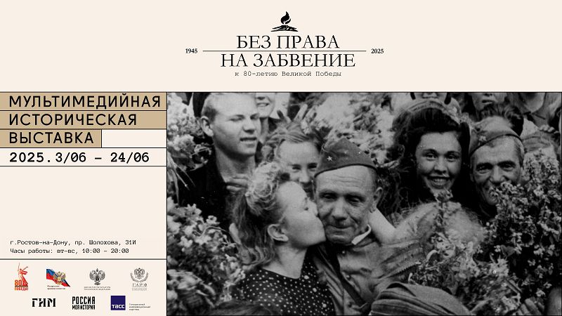 3 июня 2025 года в Центре исторического парка «Россия – моя история» откроется новая масштабная экспозиция, посвященная 80-летию Великой Победы, – «Без права на забвение». Эта уникальная мультимедийная выставка, созданная командой партнеров на основе музейных и архивных материалов, представляет собой адаптацию центрального выставочного проекта страны, представленного в Государственном историческом музее по поручению Президента РФ В.В. Путина.