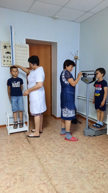 Традиционно в начале лагерной смены дети проходят медосмотр. Ткаченко Любовь Ивановна пригласила ребят в местный ФАП. Там они узнали информацию о своем росте и весе.