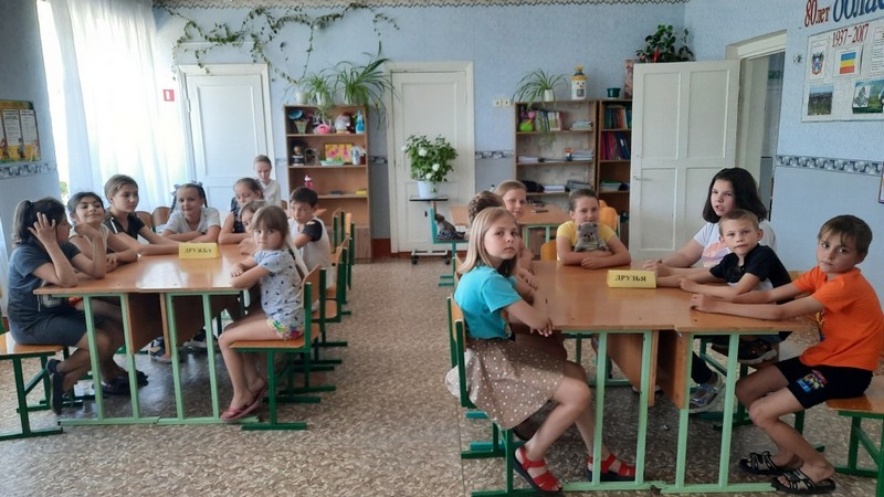 После сытного обеда ребята посетили сенсорную комнату, где они расслабились и отдохнули. По завершению отдыха воспитатель Бурховцова Н.И. провела беседу на тему: «Умей дружить» во время которой дети обсудили законы дружбы. Затем воспитатель Исаева И.В. раскрыли дальнейшее понятие дружбы в викторине «Дружба крепкая». В начале мероприятия все дружно спели песню «Если с другом вышел в путь». Продолжили различными конкурсами: «Что такое дружба?», «Составь цветок из лепестков», «Как бы поступил?», «Собери пословицу». В конце занятия ребята смастерили солнышко из лучиков – ладошек и спели песню «Дружба крепкая»