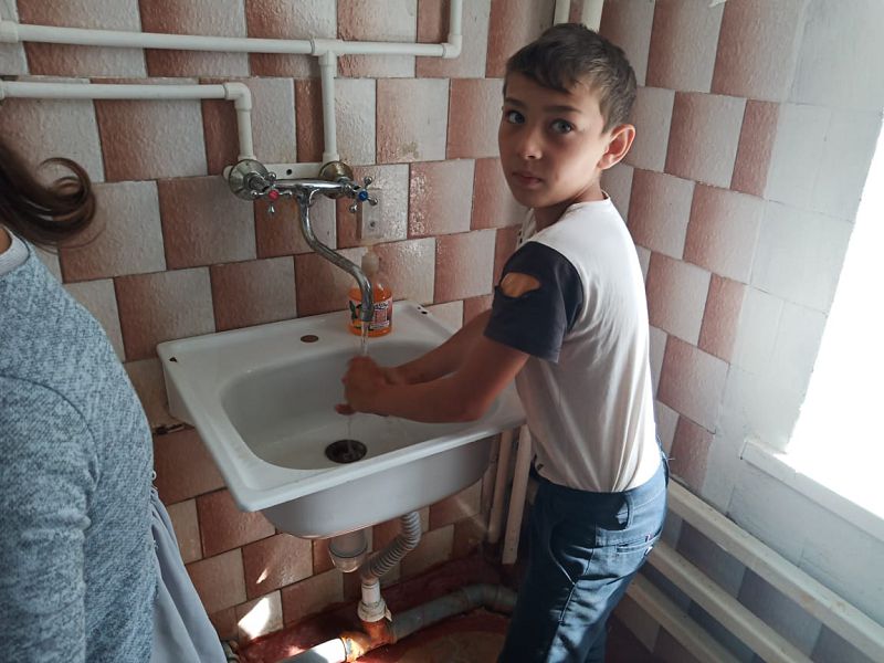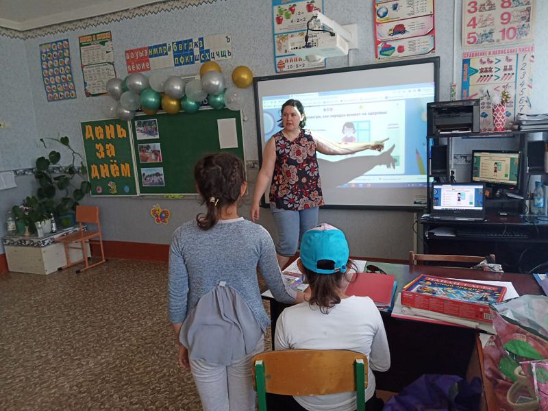 Четвертый день в пришкольном лагере начался с музыкальной утренней зарядки на свежем воздухе. Во время минутки здоровья «Уход за кожей лица и рук» ребята назвали важные принципы ухода за своим телом, перед завтраком с мылом вымыли руки.