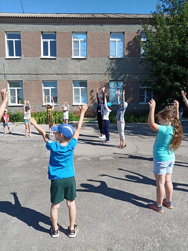Пятый день в пришкольном лагере начался с весёлой танцевальной музыкальной утренней зарядки на свежем воздухе. Её провела воспитатель лагеря Ливанда Е.В.