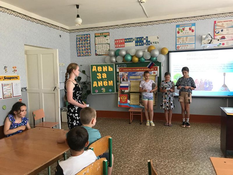 Основные мероприятия сегодня были посвящены Дню России, который празднуется 12 июня. Всем понравилась акция - «Символы России». На окнах были размещены разные неофициальные символы нашей страны. Воспитанники посмотрели презентацию «12 июня – День России», вспомнили официальные символы нашей родины, узнали их значение и историю этого праздника. Дети приняли участие в викторине «Россия – это Родина моя». Обсуждали высказывания известных людей о России, читали стихи о России, пели песни, посвящённые России.