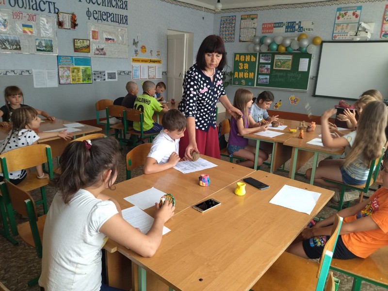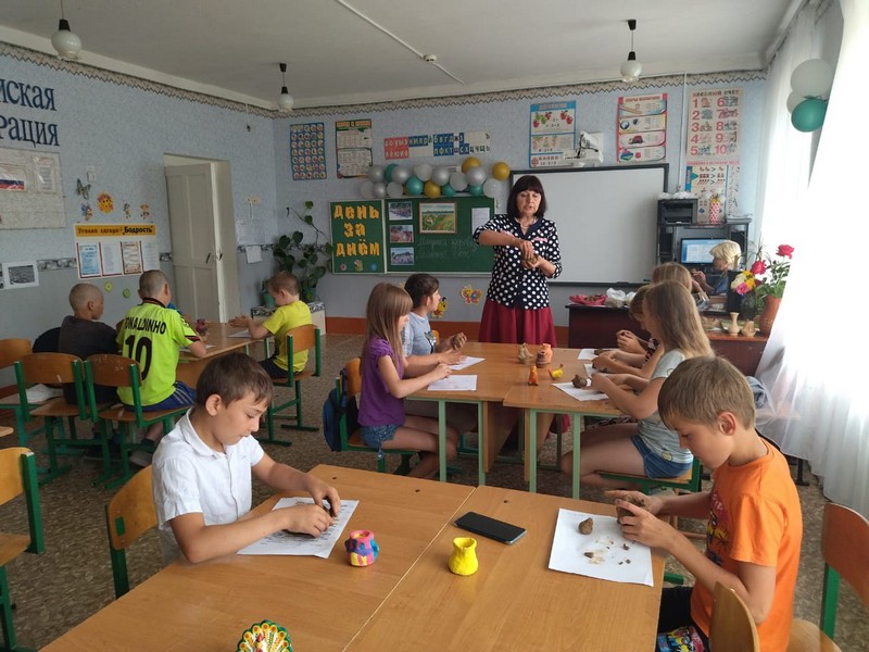 В кружке «Донская палитра» Самсонова Н. А. познакомила детей с технологией приготовления глины и способами лепки. Ребята лепили из глины посуду, птиц, животных родного края.