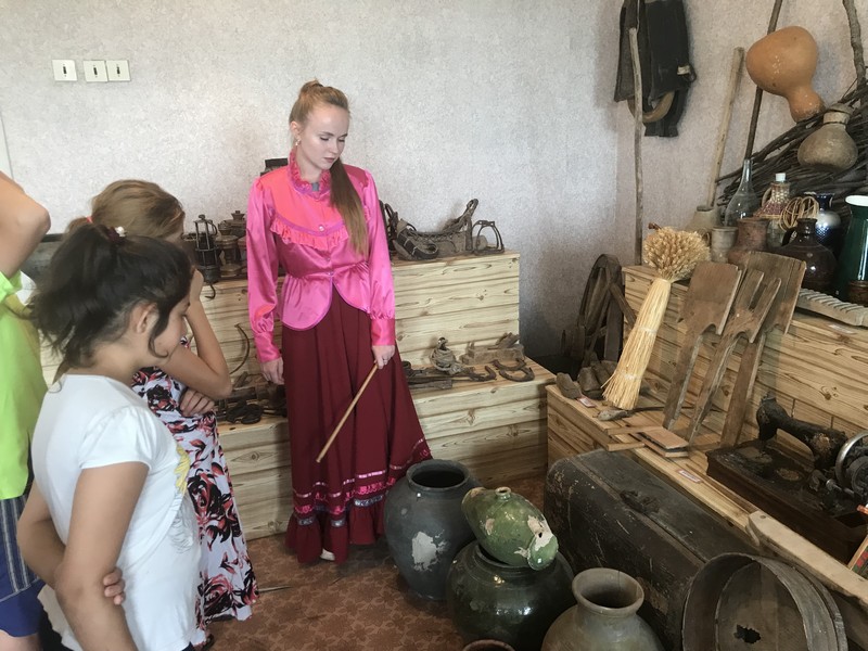 Главной темой сегодняшнего дня стало продолжение знакомства с историческим прошлым нашего родного Тацинского района. Ребята посетили школьный музей, где руководитель школьного музея Самсонова Н.А. и экскурсовод Цыганкова Д.С. познакомили с традициями и обычаями жителей хуторов Зазерского сельского поселения. Они рассмотрели предметы домашнего обихода прошлых лет, узнали о ремеслах, о том, как пряли шерсть, мастерили глиняную посуду.