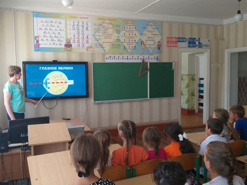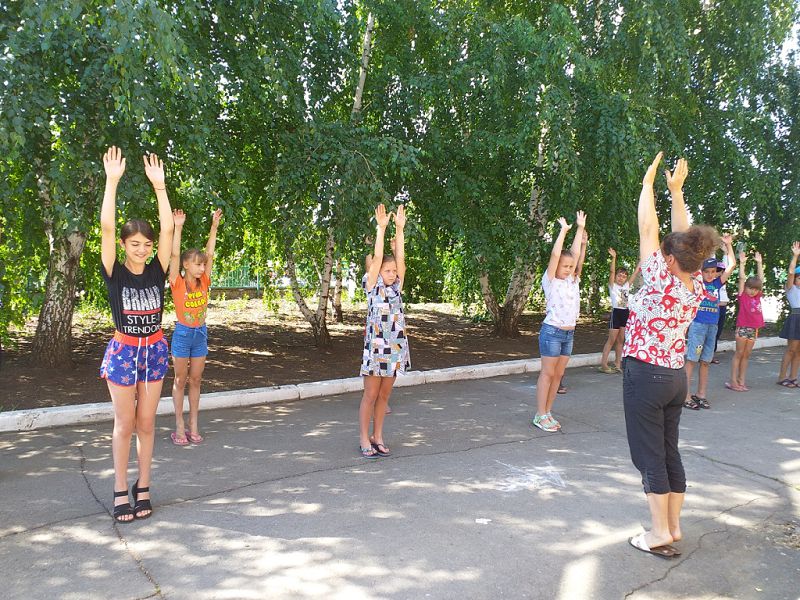 Утро в пришкольном лагере началось с бодрящей утренней зарядки на свежем воздухе, которую провела воспитатель Борисова Н.И.. На минутке здоровья «Береги глаз как алмаз» воспитатель Реентова Л.М. с ребятами посмотрели видеоролик «Школа зрения» и с главными героями Мишей и Дашей выполнили упражнения для глаз.