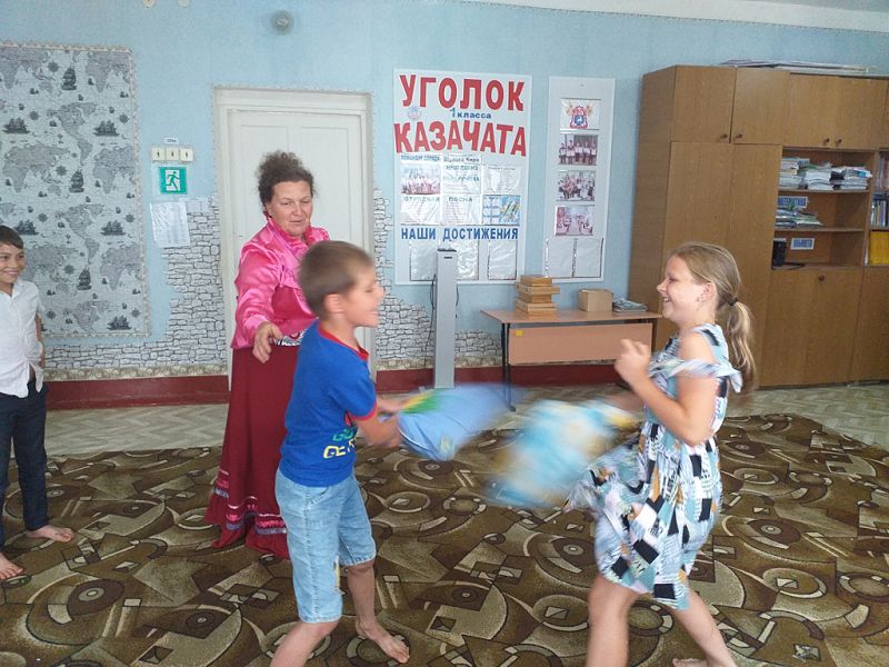 Во второй половине дня была проведена спортивная программа «Казачьи забавы. Испытай себя». Ребята узнали о людях, которые называли себя казаками. Показали ловкость и умение в конкурсах: «Оседлай коня», «Варим уху», «Казачья рыбалка» и др.