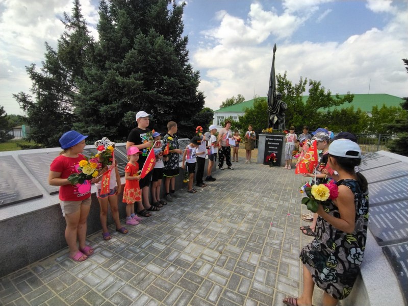 В пришкольном лагере в этот день для детей проведены патриотические мероприятия, посвященные Дню памяти и скорби. На Братской могиле воспитатели Мышанская С.В. и Самсонова Н.А. провели митинг памяти и скорби «Знать, чтобы помнить». На митинге присутствовали воспитанники лагеря и жители хутора Зазерского. Дети прочитали стихи, приняли участие в акции «Свеча памяти», почтили минутой молчания всех погибших во время войны и возложили цветы на памятник Братской могилы и мемориал «Никто не забыт, ничто не забыто».