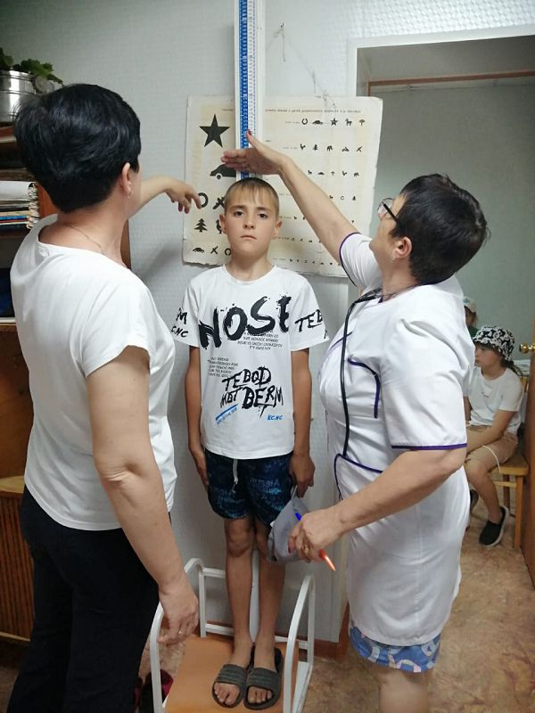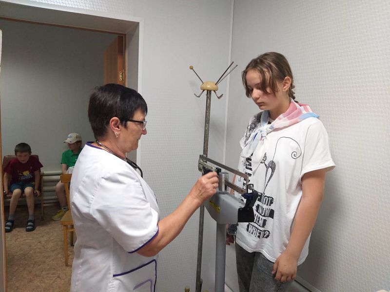Утренняя зарядка взбодрила ребят, а вкусный завтрак поднял настроение. Фельдшер Зазерского ФАП Ткаченко Л.И. пригласила детей в медпункт для измерения роста и веса и ознакомила с опасностями солнечного лета.