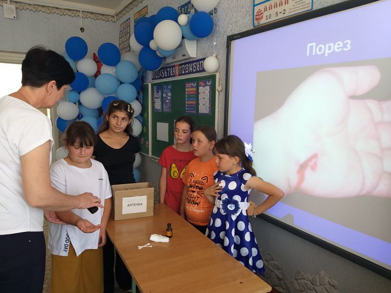 Воспитатель Реентова Л.М. рассказала «Как уберечься от травм» и провела практическую часть «Первая помощь при порезах и ссадинах».