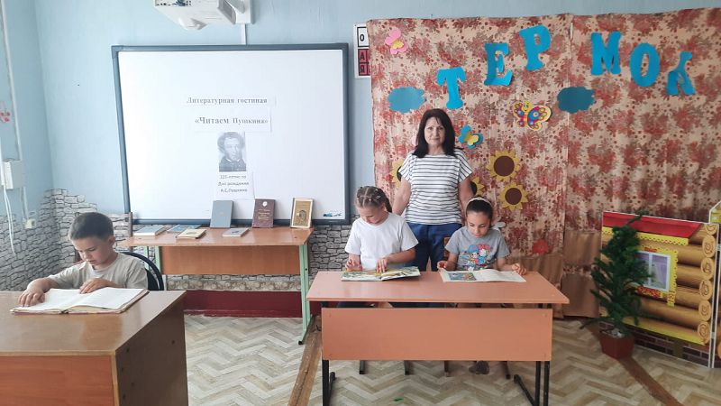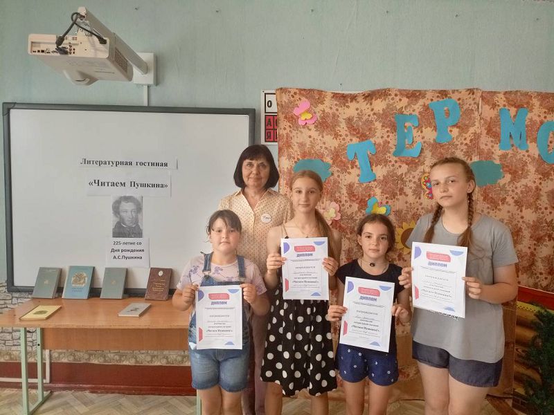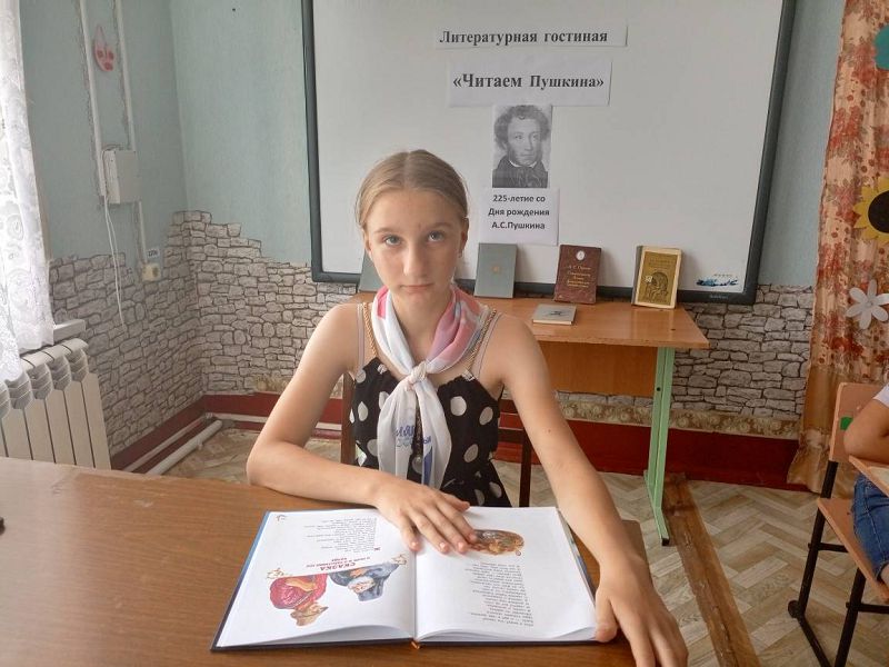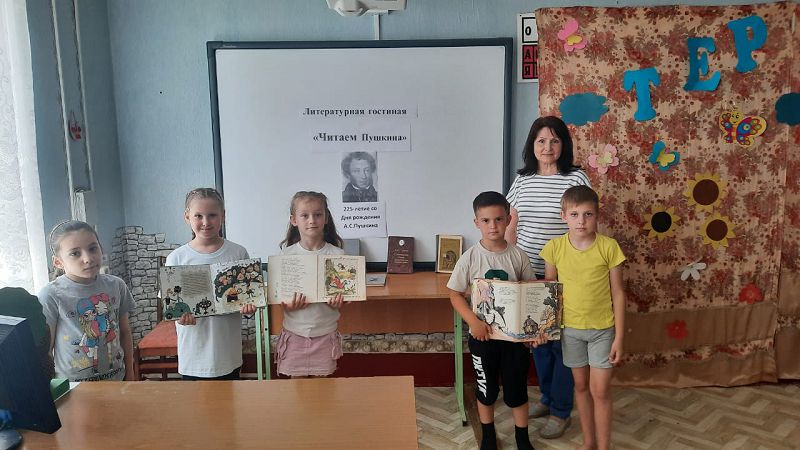 Далее всех ждала «Литературная гостиная», где ребята посетили книжную выставку «Читаем Пушкина!» и с удовольствием почитали сказки с воспитателем Марковой Н.Г.. Особую активность проявили вожатые орлят Бурховцова Валерия и  Исаева Ариана, воспитанники-орлята  Шишова Елизавета и Пуш Василиса, за что им советником директора по воспитанию Самсоновой Н.А. были вручены дипломы участников.