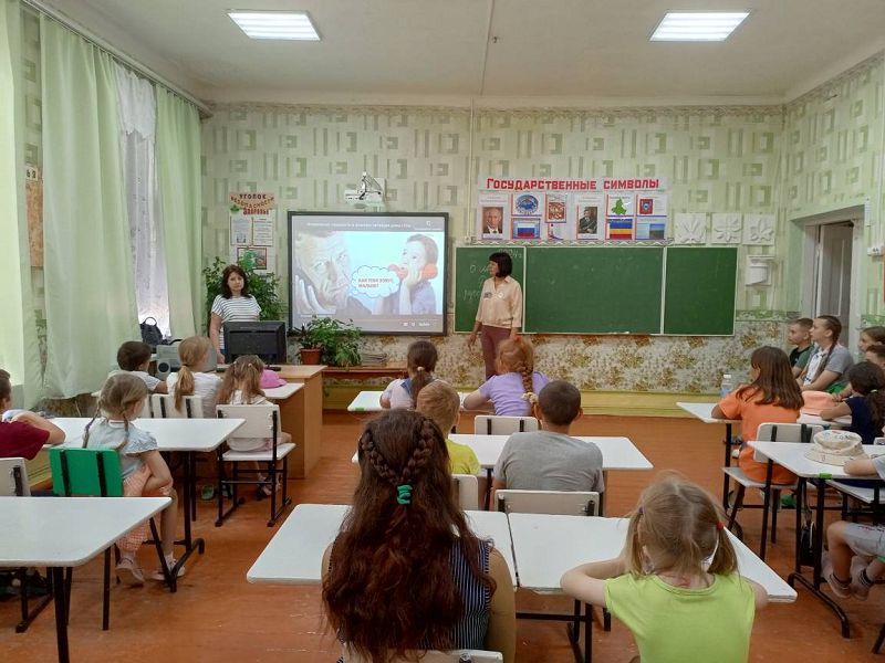 Утро в пришкольном лагере началось с линейки, на которой воспитатели объявили тему и план мероприятий на день. После энергичной зарядки с пробежкой вокруг здания школы, ребята посмотрели презентацию по правилам безопасности, затем обсудили, какие опасности могут подстерегать дома и на улице в летний период, и как их избежать.