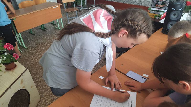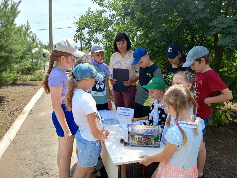После завтрака в отряде прошла квест-игра «Путешествие в страну родного языка», в которой участвовало две команды: «Алфавит» (командир Пуш Кирилл) и «Азбука» (командир Христофоренко Никита). Каждой команде предстояло пройти по своему маршруту с остановками на станциях «Загадки по сказкам», «Продолжи пословицу», «Вопросы про известнейших русских поэтов», «Вопросы про старорусский язык», «Объясни значение фразеологизмов», выполнить задания и внести ответы в бланки ответов. После подведения итогов оказалось, что у обеих команд равное количество верных ответов, и обе команды заняли I место, за что им были вручены грамоты-победителей.