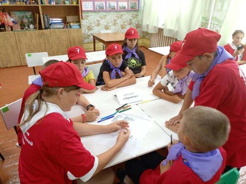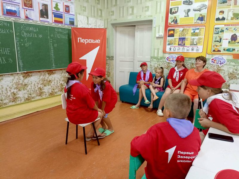 Дети поделились на две команды «Орлята» и «Первые» во главе с командирами-вожатыми Исаевой Арианой и Евтеевой Екатериной. Количество станций в Игре – 12, что соответствует количеству направлений деятельности РДДМ «Движение Первых», а их названия соответствуют направлениям работы РДДМ «Движения Первых»: