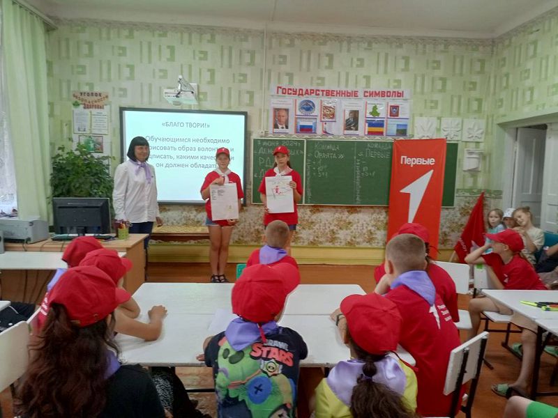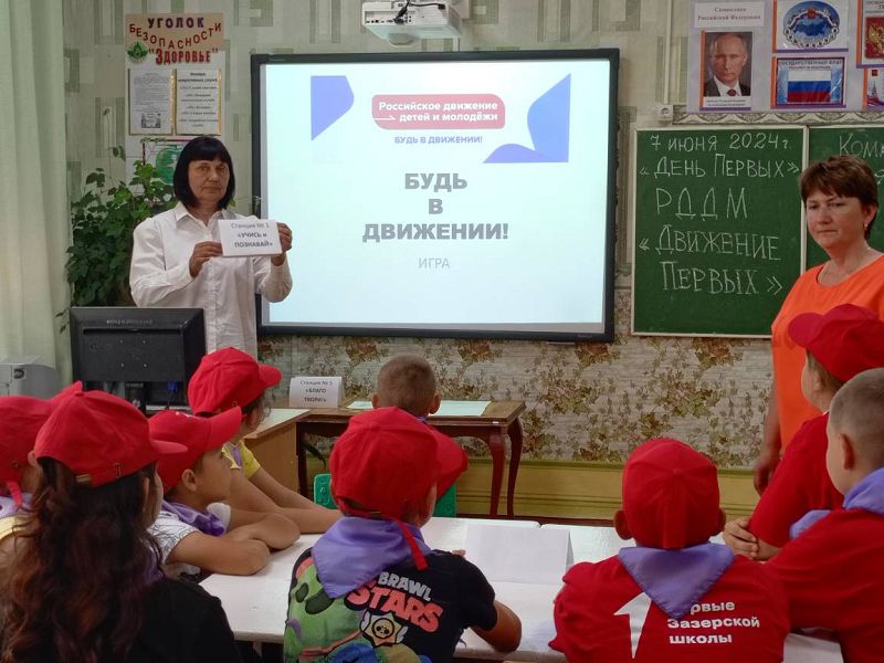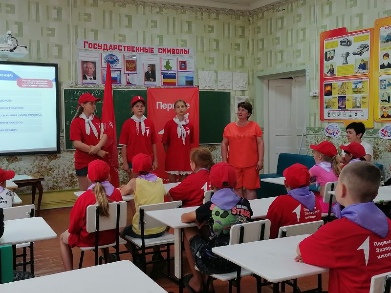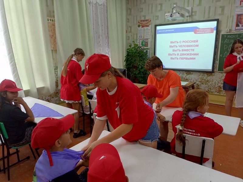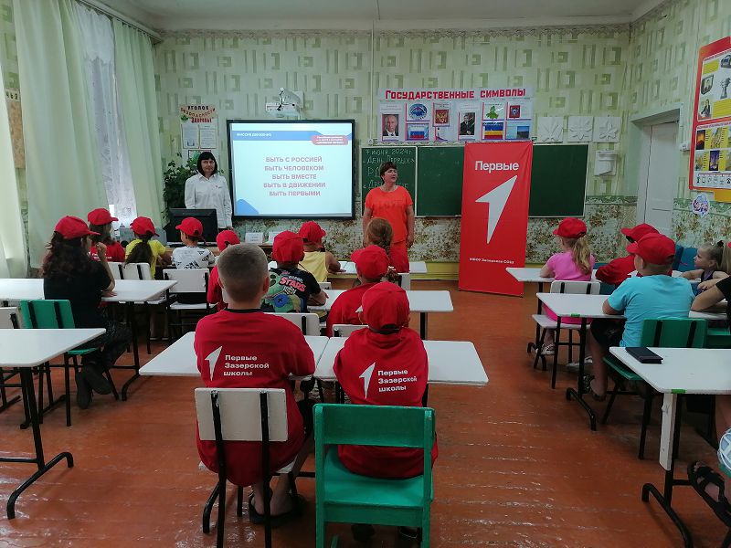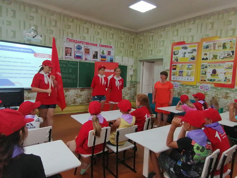 Утро в пришкольном лагере началось со сбора на линейку и энергичной зарядки. Потом ребята отправились на минутку здоровья «Личная гигиена» с просмотром презентации. После сытного завтрака состоялось торжественное открытие «Дня Первых», на котором дети посмотрели презентацию о РДДМ «Движение Первых».