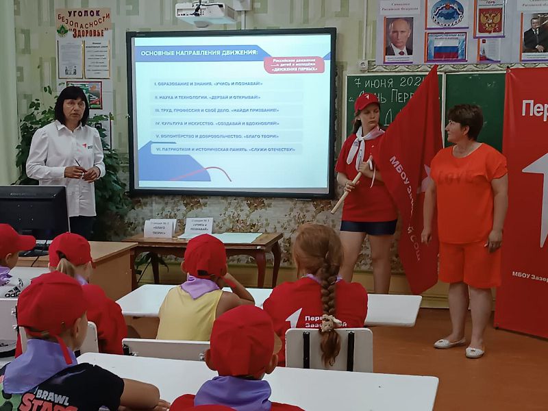 Председатель ПО движения Первых Мышанская С.В. рассказала о работе первичного отделения «Движения первых» МБОУ Зазерской СОШ за прошедший учебный год. Юные экологи представили агитбригаду о деятельности экологического отряда «Родник» и провели квест-игру. Совместно с советником директора по воспитанию и взаимодействию с детскими общественными объединениями Самсоновой Н.А. была организована Большая игра «Будь в движении», целью которой являлось знакомство детей с основными направлениями деятельности РДДМ «Движение Первых», сплочение команд и моделирование ситуаций взаимопомощи, мотивирование на осознанную социально-значимую деятельность.