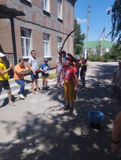 После обеда и отдыха в сенсорной комнате начались соревнования «Летний казачий сполох». Ребята разделились на две команды «Казачата-храбрецы» и «Казачата-удальцы». Мероприятие началось с гимна Всевеликого войска Донского. В ходе разминки познакомились со значением слова сполох, ответили на вопросы о традициях и обычаях донских казаков. Участники игры с большим интересом состязались в конкурсах «Казак без коня, что воин без ружья», «Казак шашкой владеть умеет», «Казаки – меткие стрелки», «Склад боеприпасов», «Посадка картофеля», в которых проявили умение действовать в команде, ловкость, быстроту, меткость. В итоге победила дружба. Финалом соревнований была музыкально-танцевальная игра «Казачья шашка».