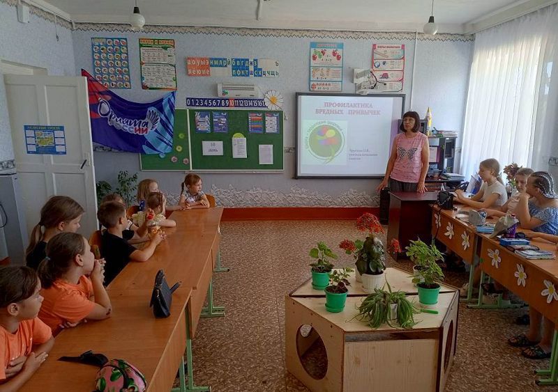 Десятый день в пришкольном лагере начался с «Зарядки Первых». Под музыкальное сопровождение дети весело выполняли упражнения совместно с вожатыми-активистами «Движение первых». На минутке здоровья воспитатели с детьми обсудили тему «Профилактика вредных привычек», как сказать «нет!» вредным привычкам и «да!» полезным.