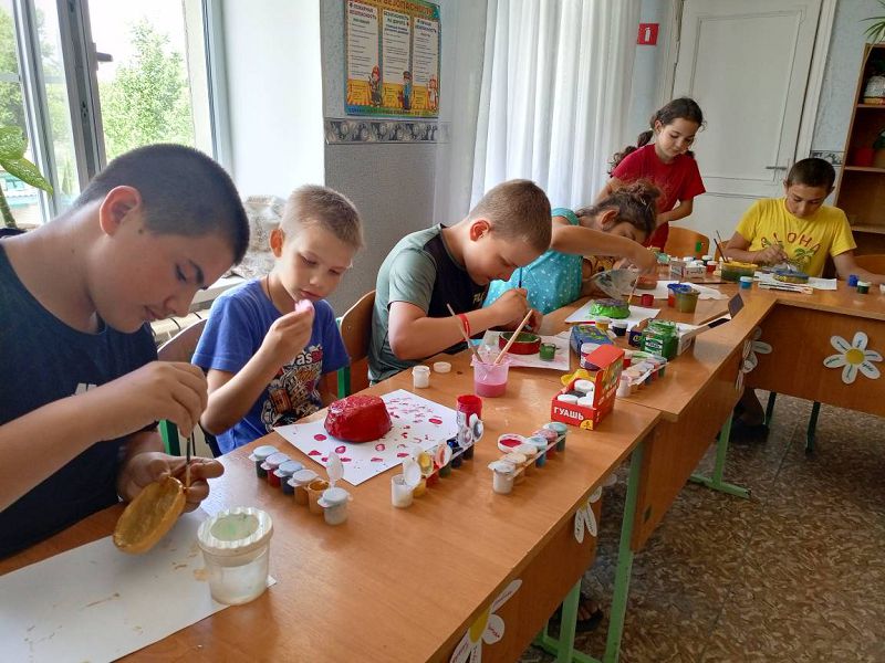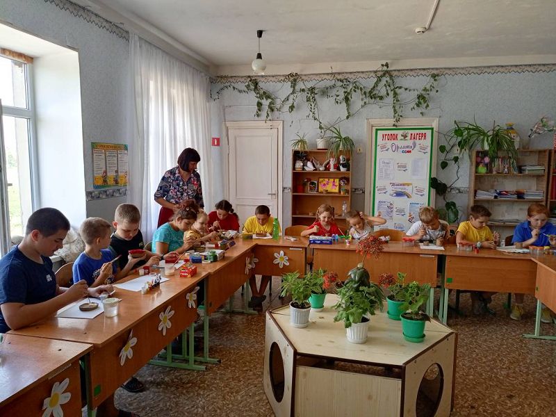 В завершении дня дети посетили кружок «Палитра», во время которого были выполнены в цвете ранее слепленные из глины поделки на тему «Казачья утварь».