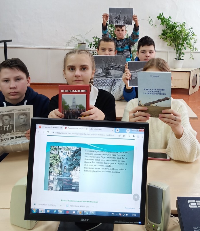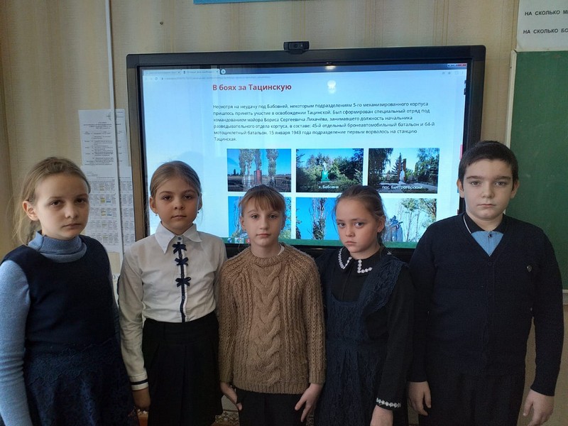 В преддверии празднования 79-й годовщины освобождения нашего Тацинского района от немецко-фашистских захватчиков, которое свершилось 15-16 января 1943 года, сегодня, 14 января, в нашей школе состоялись мероприятия, посвященные этому историческому событию.