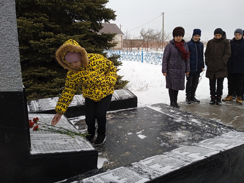 Классными руководителями проведены с обучающимися 1-10 классов беседы и классные часы с просмотром презентаций и документального фильма «Прорыв в бессмертие». На Братской могиле х.Зазерского состоялся митинг памяти, посвященный 79-летию освобождения хуторов Зазерского сельского поселения 6-7 января 1943 года. Волонтеры 8 и 10 классов почтили память минутой молчания погибших воинов и возложили живые цветы к памятнику.