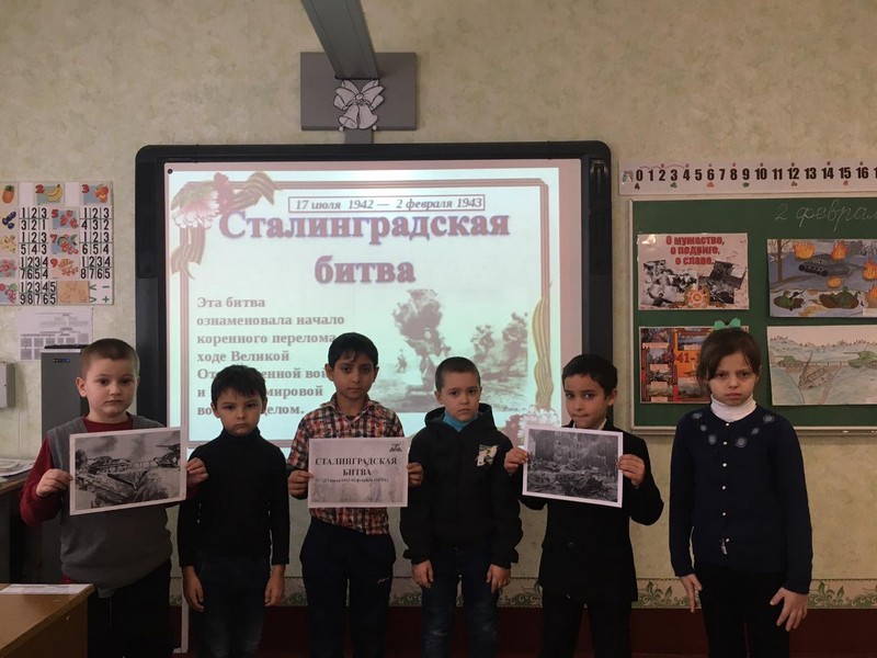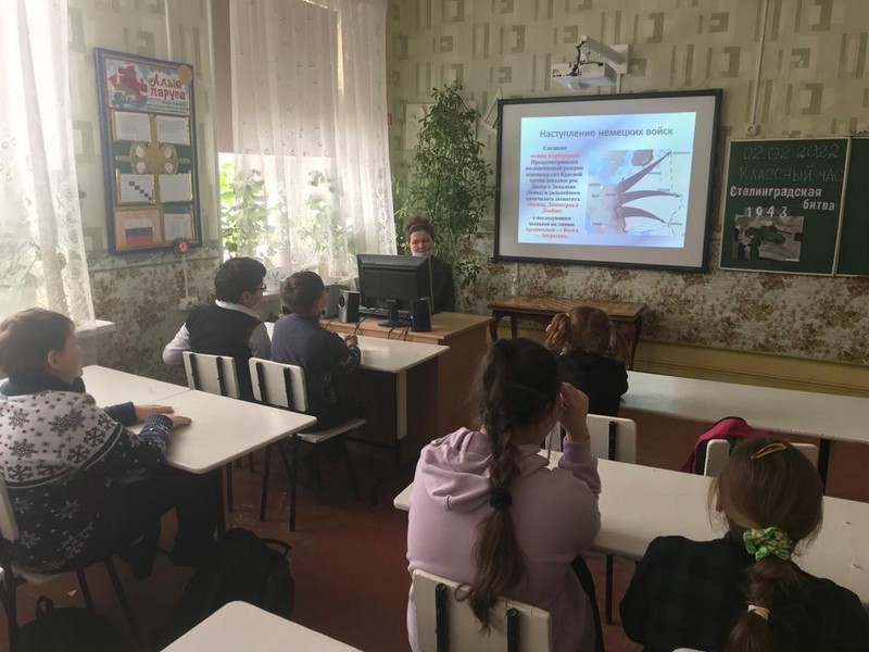 2 февраля 2022 г. в школе состоялись тематические беседы и классные часы, посвященные 79-й годовщине разгрома советскими войсками немецко-фашистских войск в Сталинградской битве.