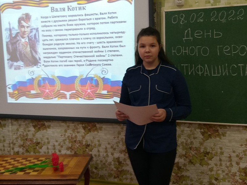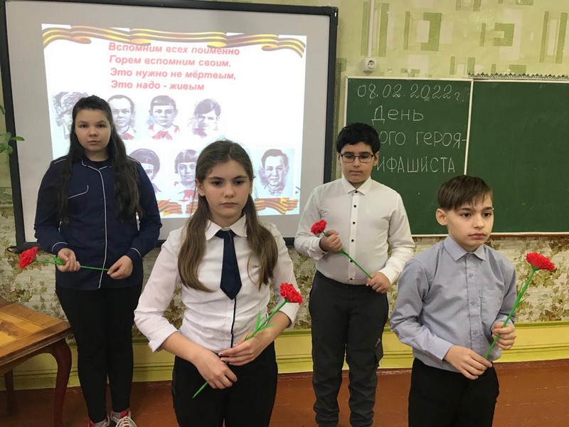 8 - 9 февраля 2022 г. с обучающиеся 2-10 классов проведены классные часы, посвященные Дню юного героя-антифашиста.