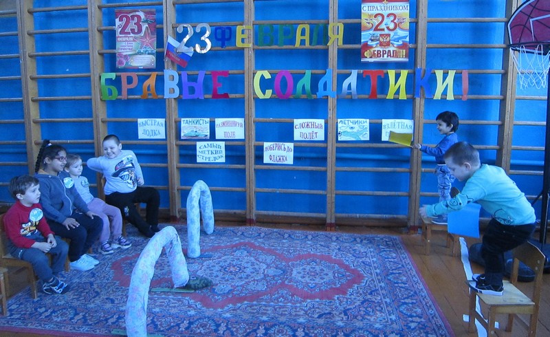 В конкурсных эстафетах приняли участие две команды: «Танкисты» и «Лётчики». Выполняя задания, воспитанники проявили смекалку, ловкость, выносливость, быстроту. Ребята поняли, как тяжело приходится солдатам на военной службе.