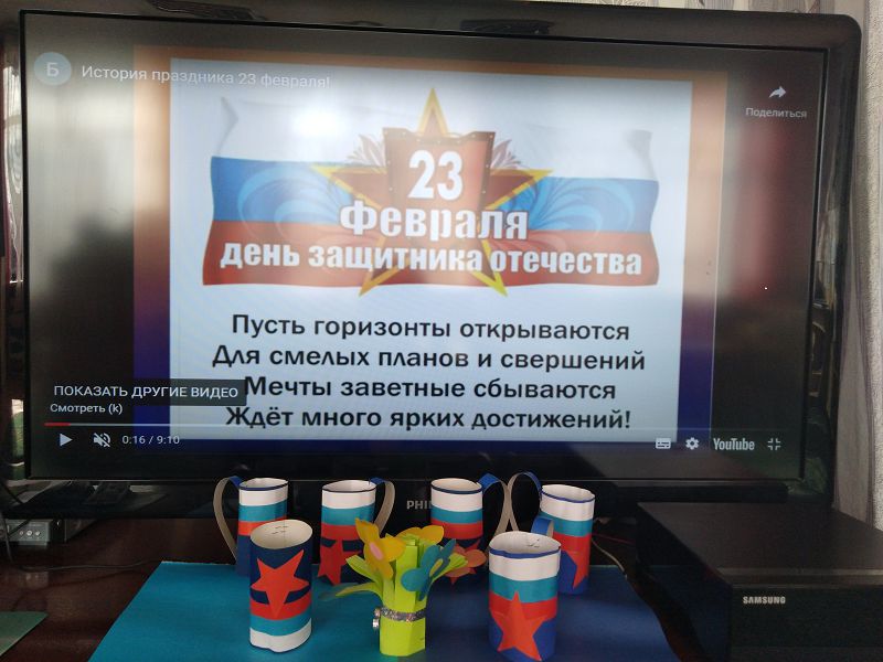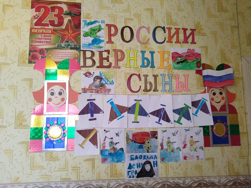 В период с 17 по 22 февраля 2022 года в дошкольной группе была оформлена выставка творческих работ воспитанников «России верные сыны», посвящённая месячнику патриотического воспитания. Ребята сделали аппликации самолётов, нарисовали и раскрасили рисунки. Своими рисунками ребята выразили уважение к тем, кто стоял, стоит и будет стоять на защите нашей Родины.