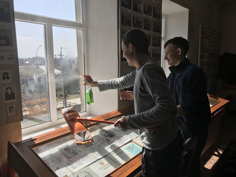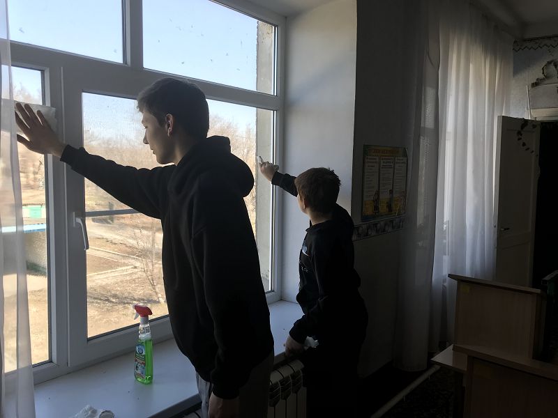 Ими стали Барков Андрей, Пушкарев Данил, Казьменко Анна, Дробязко Александра и Панченко Артем. Ежедневно, после прохождения термометрии и инструктажа по технике безопасности при выполнении работ, ребята будут трудиться по благоустройству помещений школы и территории школьного двора. Первым таким заданием стало мытье окон по классным кабинетам, в столовой и школьном музее.