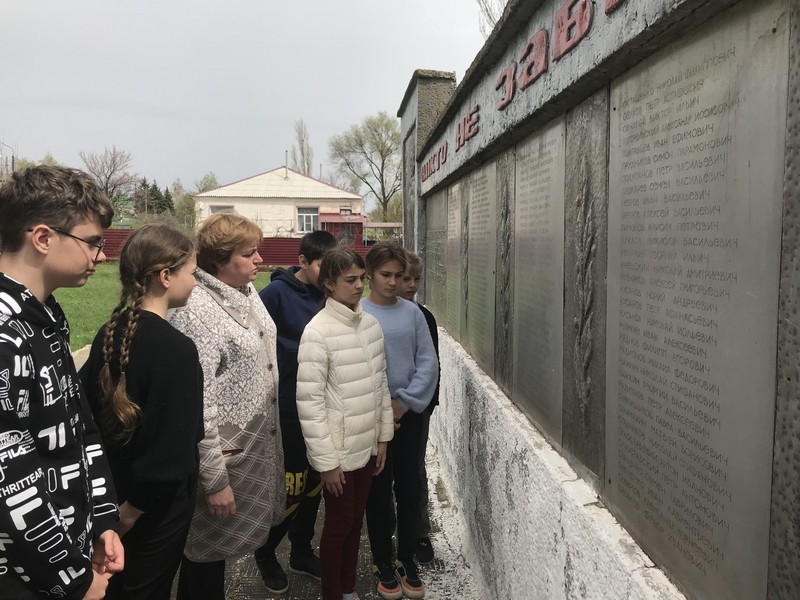 Посмотрев презентации, ребята посетили мемориал, посвященный не вернувшимся землякам с войны в родные хутора Зазерского сельского поселения. Ребята ознакомились с именами воинов, высеченными на памятнике, почтили память минутой молчания погибших и возложили живые цветы.