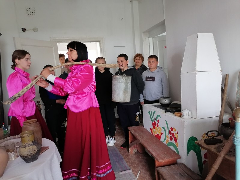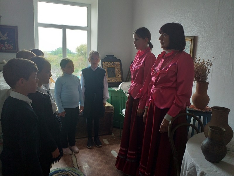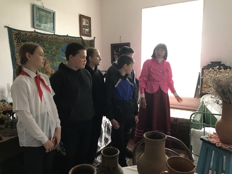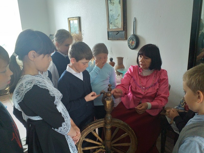 Обучающиеся 1-10 классов побывали в комнате старины «Казачий курень» с целью ознакомления с бытом, традициями и ремеслами донских казаков, земляков родного края. Экскурсовод Казьменко Анна ученица 8 класса с руководителем музея Самсоновой Н.А. продемонстрировали посетителям занятия донских казачек: чесание пряжи, прядение на прялке, приготовление пищи в чугунках, уход за детьми и другие домашние дела. Особым местом у донских казаков считается «Святой угол». «Казак без веры - ни казак!» гласит народная пословица. С молитвой начинали день и ею заканчивали. Многие ребята захотели прикоснуться к музейным экспонатам, представив себя на месте наших предков в прошлом столетии. Таким образом, история оживает. Задача музея и заключается в том, чтобы сохранить для молодого поколения прошлое своей Родины, чтобы они знали традиции и обычаи своих предков и смогли передать их в будущее. Сегодня ребята почтили память нашего земляка казака Ткачева Николая Ивановича, воевавшего в рядах 5-го Донского Миус-фронта в годы Великой Отечественной войны. В станице Тацинской ежегодно проводятся казачьи домашние игры «Шермиции» имени казака Н.И. Ткачева. О боевом и трудовом жизненном пути Николая Ивановича в школьном музее оформлен стенд.