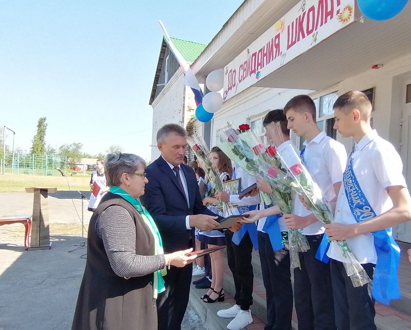 25 мая 2022 г. в Зазерской школе прозвенел Последний звонок для выпускников 9 класса. На торжественной линейке поздравили ребят Любовь Валентиновна Медведева директор школы и Юрий Иванович Артеменко Глава Администрации Зазерского сельского поселения. Со словами напутствия от родителей 9 класса выступила Людмила Михайловна Банько.