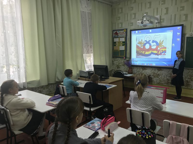 В преддверие 85-летнего юбилея Ростовской области на классных часах "С чего начинается Родина..." и занятиях «Разговоры о важном» учащиеся нашей школы вели разговор на тему «Наша страна - Россия!»: в младших классах «Где мы живем?», «От поколения к поколению: любовь россиян к Родине», в старших классах «Мы сами создаем свою Родину» и др. Страну свою мы с уважением называем Родиной, а место, где были рождены, родным краем. Родной край, свою малую родину, как и родителей, мы не выбираем. У каждого человека она бывает одна и на всю жизнь. Наша малая Родина – Донской край. «России малая частица, Земля, похожая на рай.