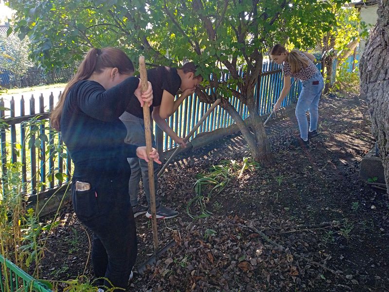 В рамках мероприятий в поддержку СВО 30 сентября 2022 года волонтерами 9-11 классов проведена акция «Мы за мир!». Ребята оказали помощь одиноким пожилым людям в уборке дворов и придворовых территорий: Казьменко З.П., Гелемеевой Л.А., Мышанской П.И, Банько Е.И.