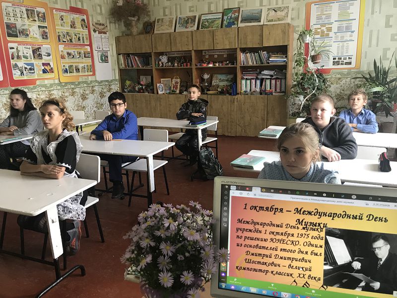 В России Международный день музыки празднуется с 1996 года, когда исполнилось 90 лет со дня рождения композитора Дмитрия Шостаковича (1906-1975) – одного из инициаторов учреждения праздника. В нашей школе учителем музыки Самсоновой Н.А. и учителями начальных классов на уроках музыки были показаны презентации с прослушиванием классических произведений известных композиторов.