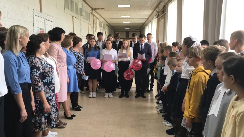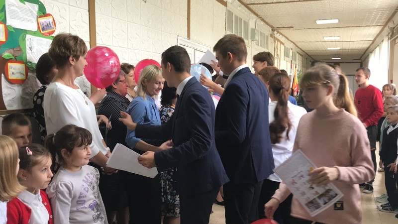 В праздничный день, посвященный Дню учителя в школе проведен день самоуправления. Утро началось со школьной линейки, на которой обучающиеся поздравили всех педагогов открытками и воздушными шарами.