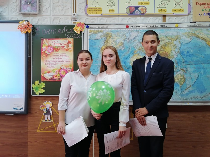 Выпускники 11 класса организовали для учителей урок-путешествие по школьным предметам. Ребята девятого класса в роли учителей провели уроки для обучающихся 1-8 классов. Также в этот день было организовано поздравление учителей, которые находятся на заслуженном отдыхе совместно с советником директора по воспитанию школы.