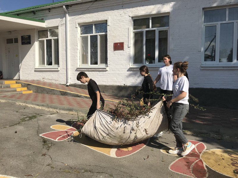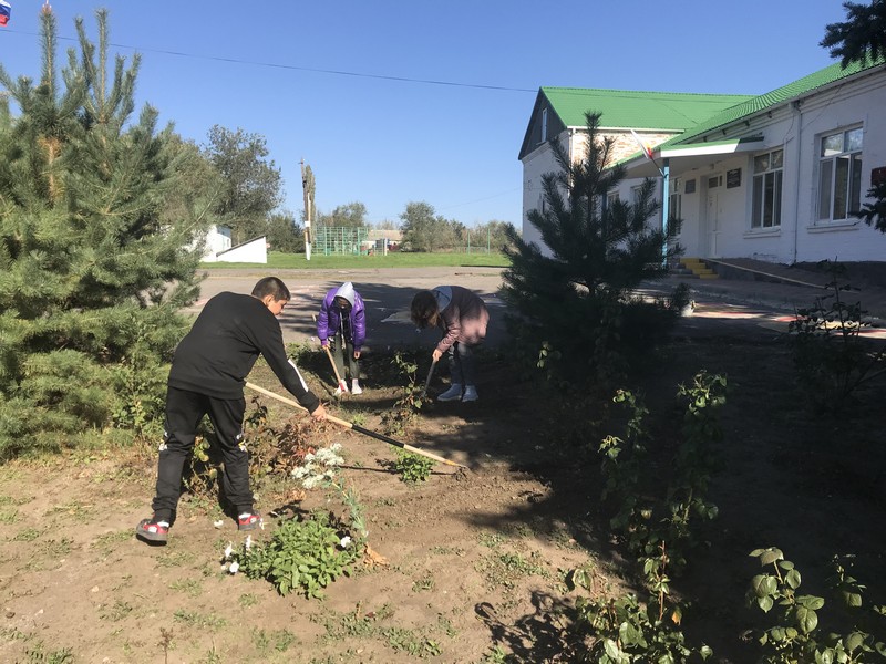 После уроков 7 октября 2022 г. проведен субботник по прополке порослей травы на детской площадке дошкольной группы и цветочных клумбах территории школьного двора.