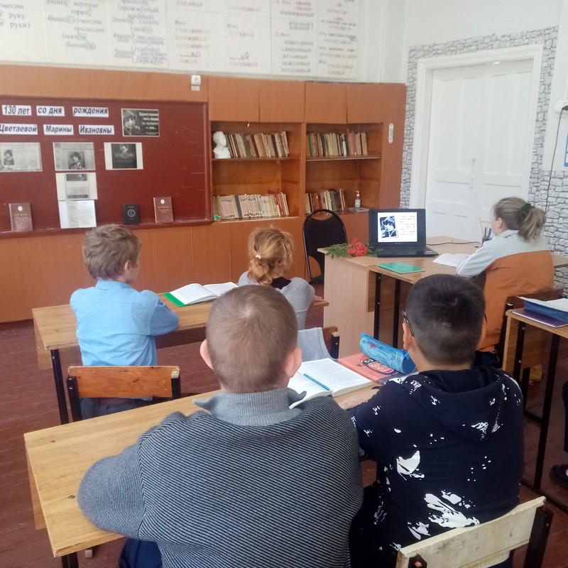 Ребята с интересом просмотрели видео-презентацию о поэтессе, во время просмотра которой учитель русского языка и литературы Исаева И.В. добавила интересные факты из жизни Марины Ивановны. Учащимися 6 класса была организована выставка книг, в которых были собраны великие творения замечательной поэтессы. Многие её произведения были прочитаны и проанализированы на уроке.