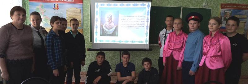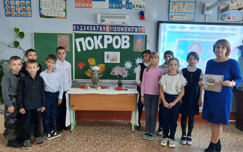 14 октября 2022 г. в школе состоялись мероприятия, посвященные православному празднику Покрова Пресвятой Богородицы, особо почитаемому донскими казаками. С воспитанниками дошкольной группы (воспитатель Ромашкова О.А.) и обучающимися 1-11 классов проведены утренник и классные часы по истории праздника, о приметах, обычаях и традициях его проведения на Дону.